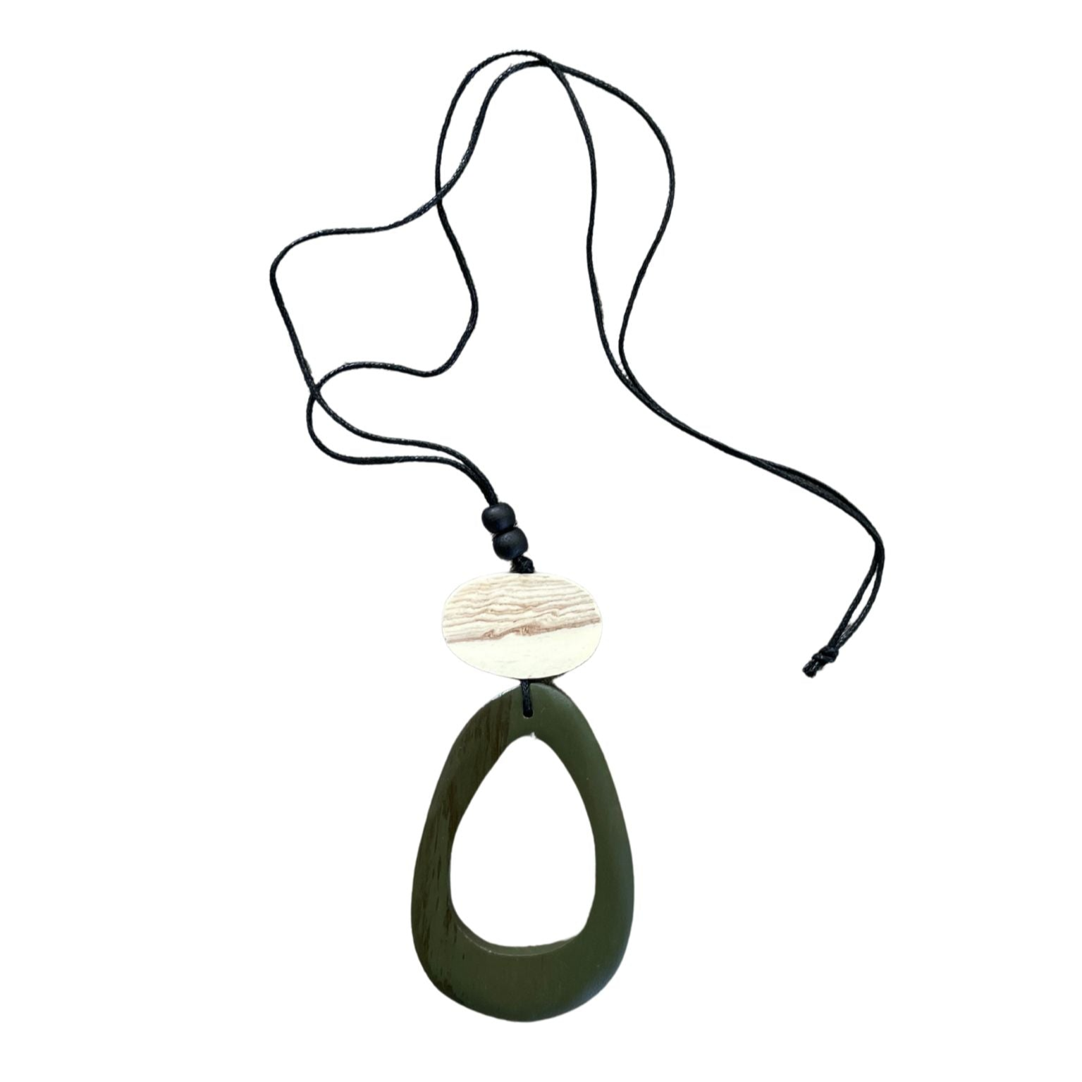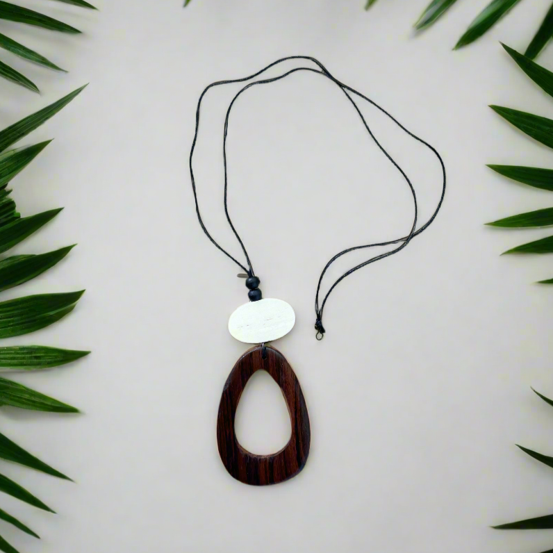 Add a touch of charm with this Open Oval Pendant, handmade with care from ethically sourced materials. Its sleek, open design brings a playful twist to any outfit, making it perfect for everyday wear or special occasions. SKU: FB1318Materials: Wood, Waxed Thread