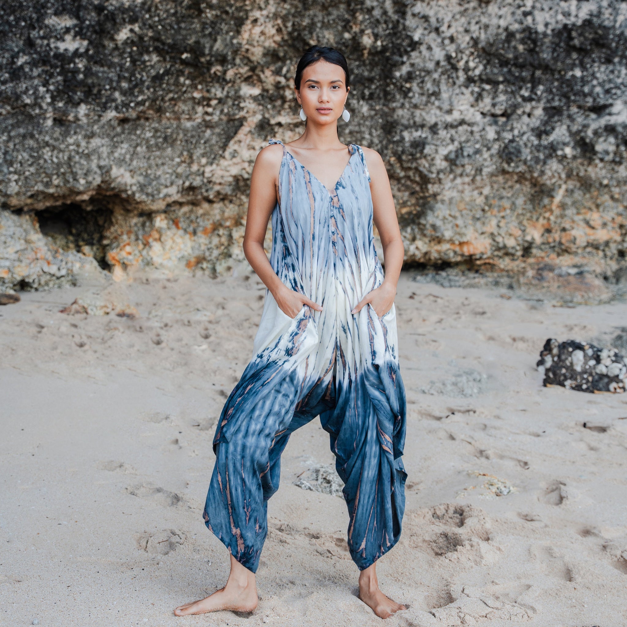 Meet your new go-to for laid-back days. This tie dye romper features a sophisticated lapis ombre in soothing grey and cream tones—moody enough to feel grown-up, playful enough to keep things fun. Slip it on and feel the ease of a single piece that takes you from morning errands to evening hangouts without missing a beat.