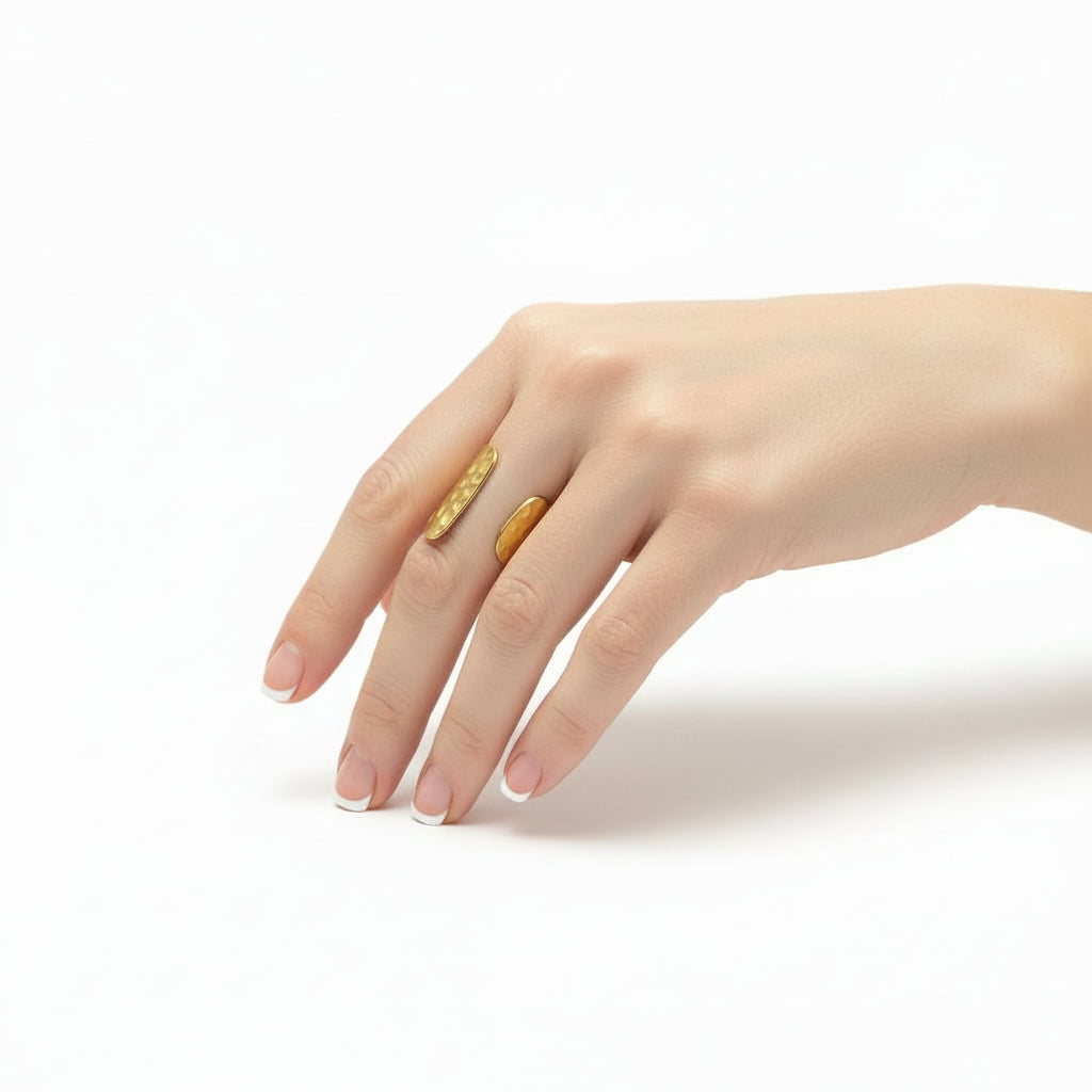 Beaten Cuff Ring - Gold Stainless Steel