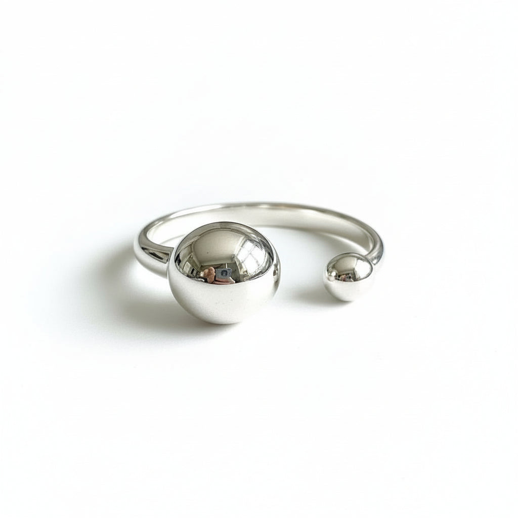Meet your new favorite finger accessory—the Open Ball ring in sleek silver stainless steel. With its modern geometric design, this ring adds a subtle pop of personality to any day. Comfortable enough to wear from sunrise to sunset, it's the kind of piece that becomes part of your signature style without trying too hard.