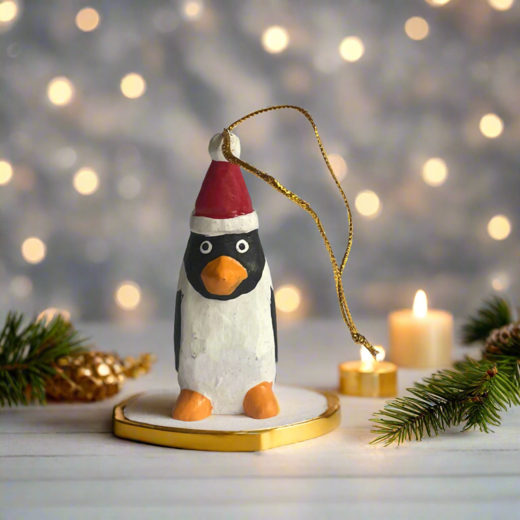 Get in the holiday spirit with this Hanging Penguin Ornament! Handmade in Bali, this wooden ornament adds a playful touch to your Christmas tree.Ethically sourced and handmade in Bali.Material: Wood & StringSize: 2.5" tallSKU RA6416