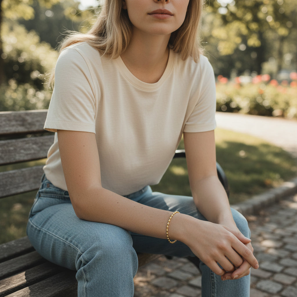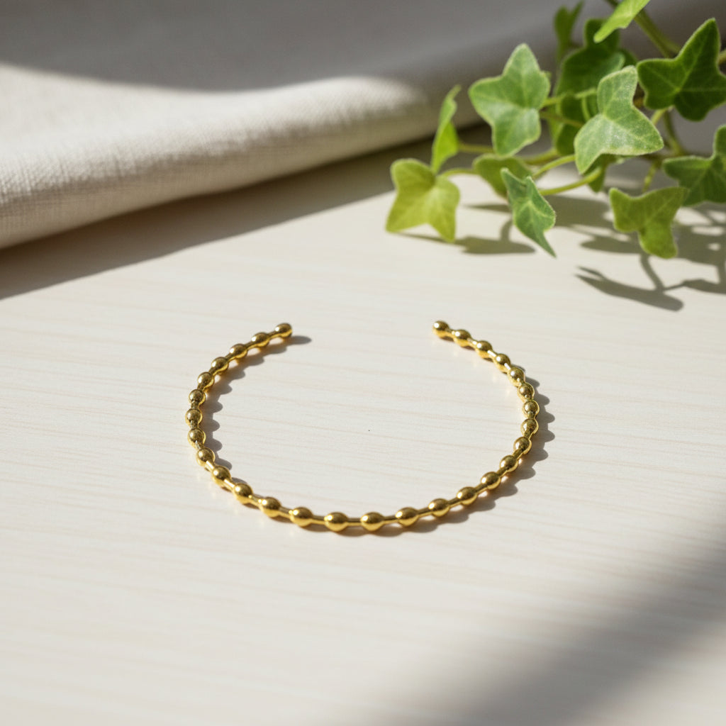 This single gold plate bangle is the perfect addition to any outfit. Its dainty design adds a touch of elegance and the pretty gold plate catches the eye. A must-have for any fashion lover!