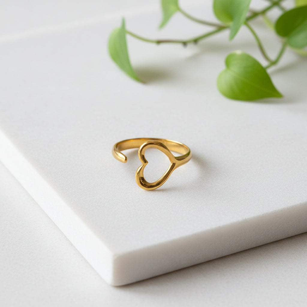 Single Open Heart Ring - Gold Plate