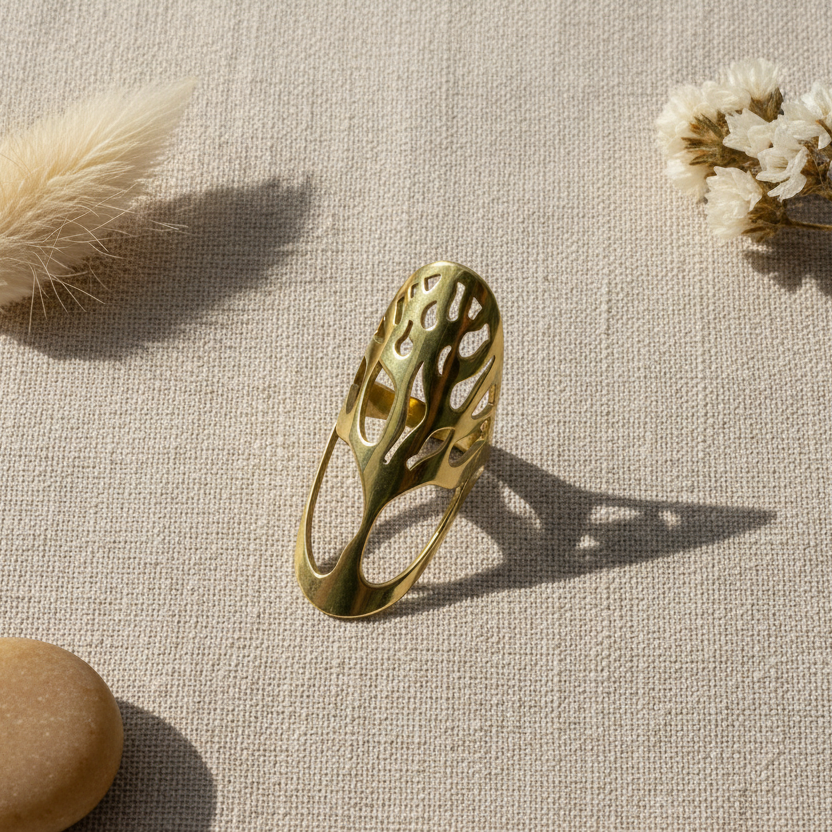 Oval Tree Ring - Gold Stainless Steel