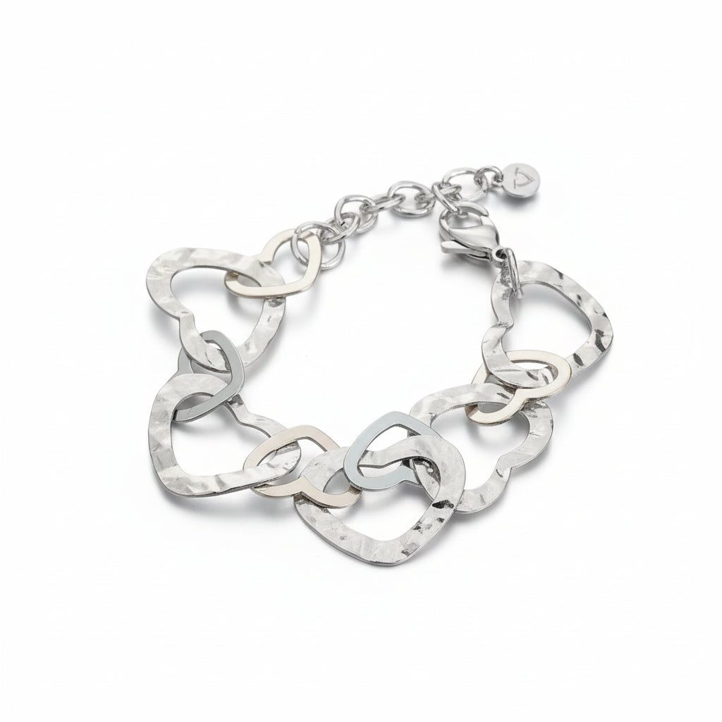 Linked Heart Bracelet - Grey Stainless Steel