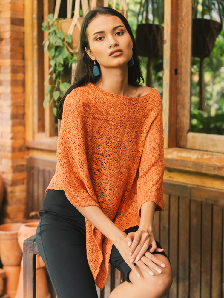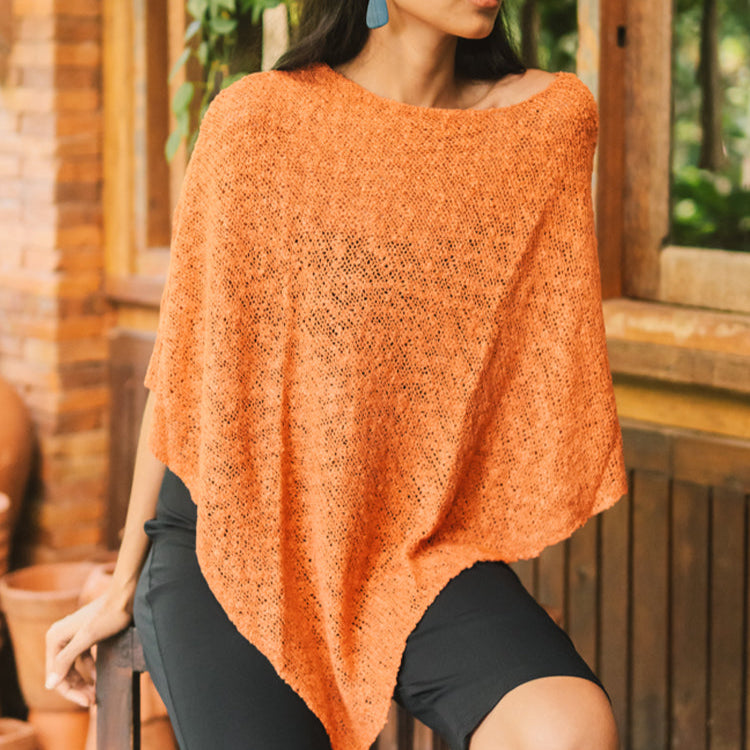 Elevate your wardrobe with the Double Knit Popcorn Poncho in vibrant orange. Crafted for warmth and style, its textured double knit fabric offers cozy comfort while making a refined statement. Perfect for layering, this poncho adds a sophisticated pop of color to any ensemble, blending effortless elegance with practical warmth.
