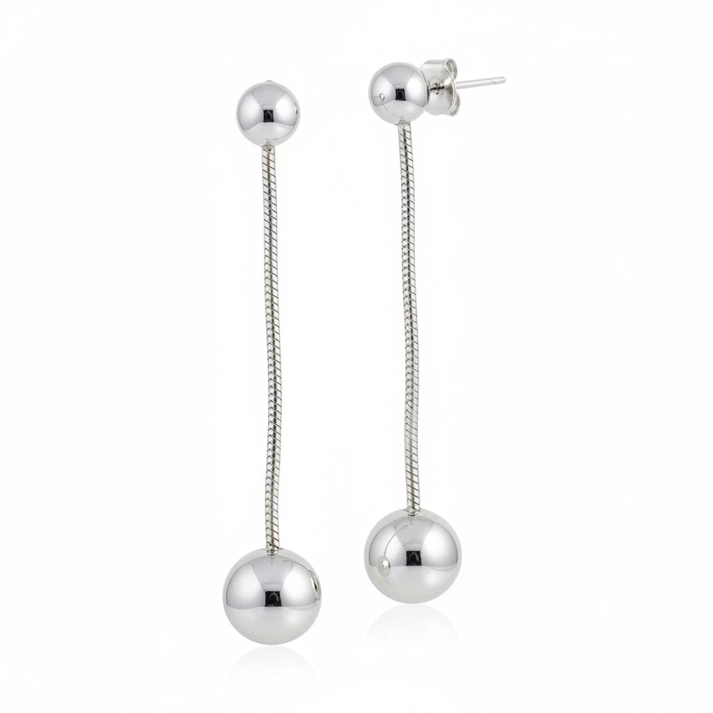 Hanging Ball Stud Earring- Grey Stainless Steel