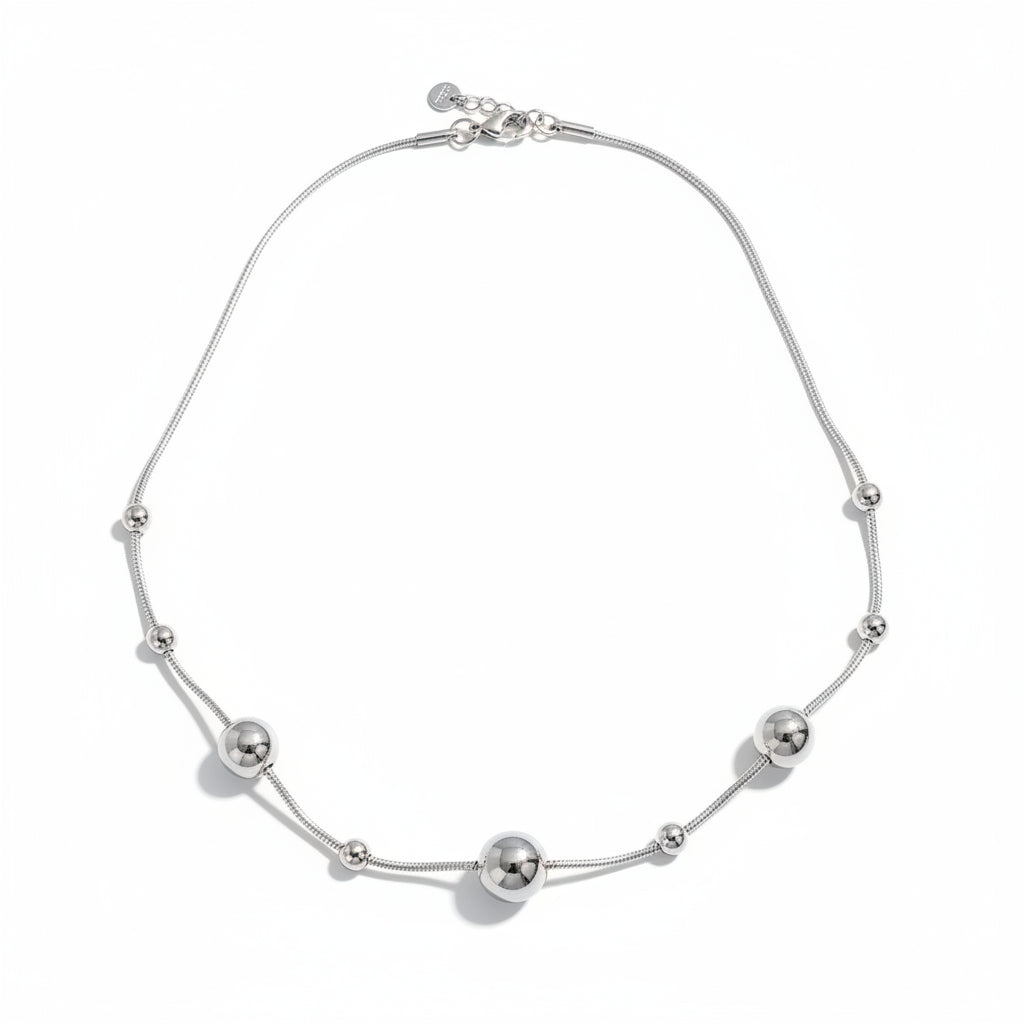 This Multi Ball Necklace in sleek grey stainless steel is perfect for layering or wearing solo. This playful piece features multiple spheres that catch the light beautifully. Durable, versatile, and just the right amount of quirky—it's the accessory that works as hard as you do.