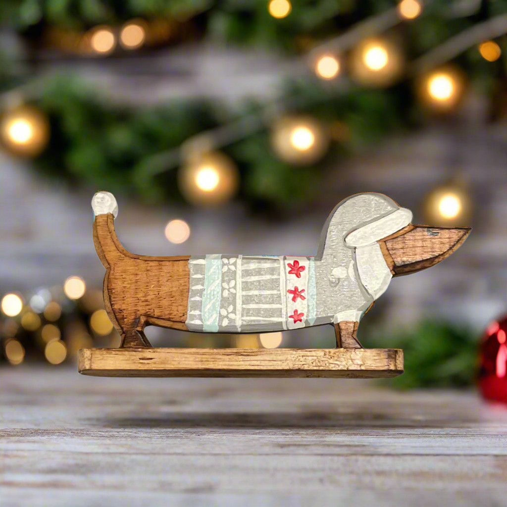 Get in the holiday spirit with this Standing Sausage Dog Ornament! Handmade in Bali, this wooden ornament adds a playful touch to your Christmas decor.Ethically sourced and handmade in Bali.Material: Wood & StringSize: 6"SKU RA6401