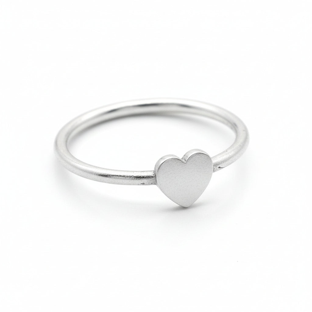 Simple and sweet, this style of ring is classic great for stacking or pairing with other jewellery. The heart detail adds interest to a minimalist style.