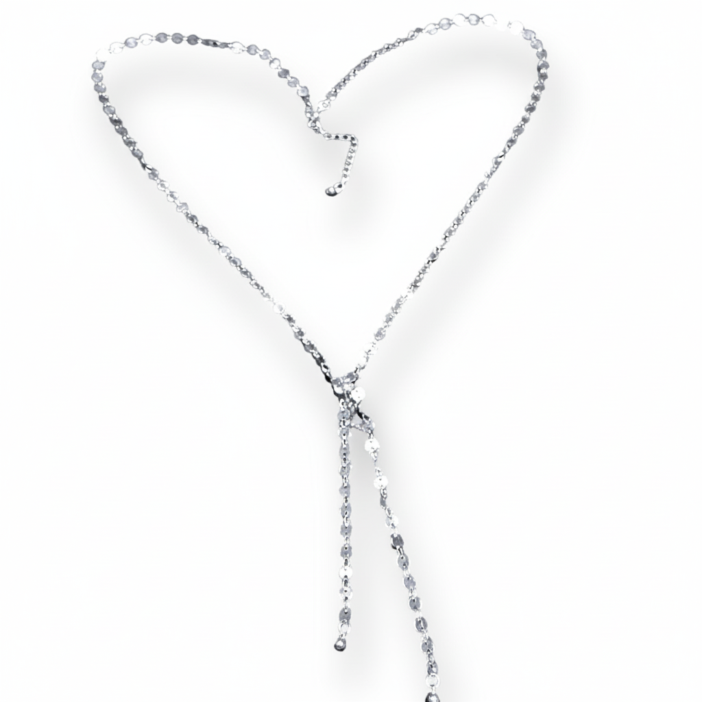Disc Chain Necklace With Double Drop In Silver Plate