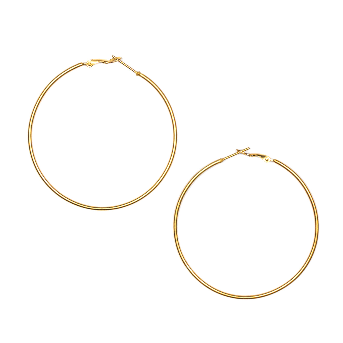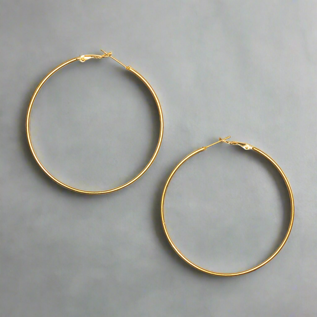 Add a touch of timeless elegance to your look with these Large Hoop Earrings in stunning gold plate. The classic design is perfect for any occasion and will elevate any outfit. Make a statement with these versatile and stylish earrings.